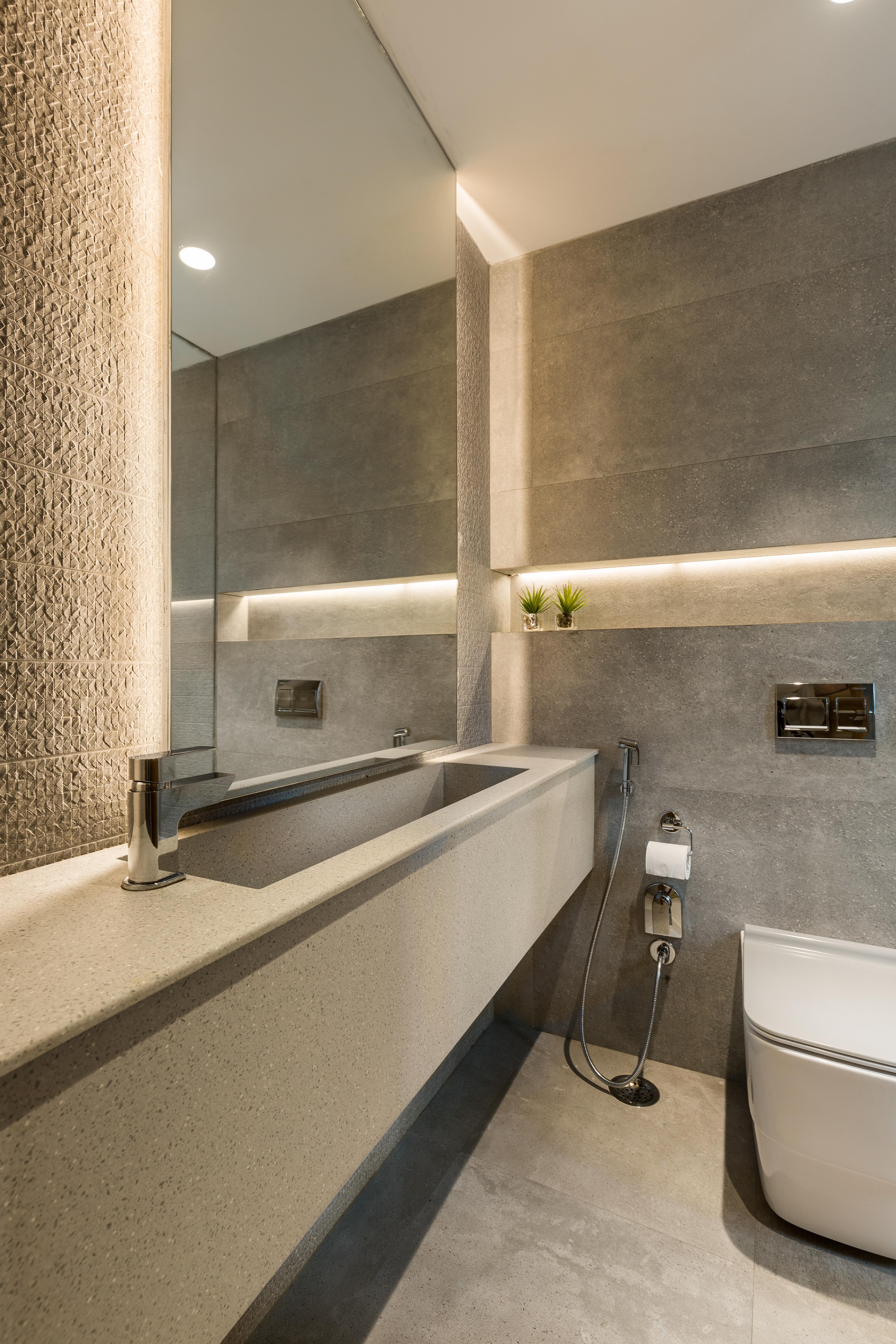 "The most challenging and interesting part of this project was the floating arched ceiling in the family lounge. The process of which started with brick and steel re-enforcement and eventually gave shape in the form of sandstone veneer."