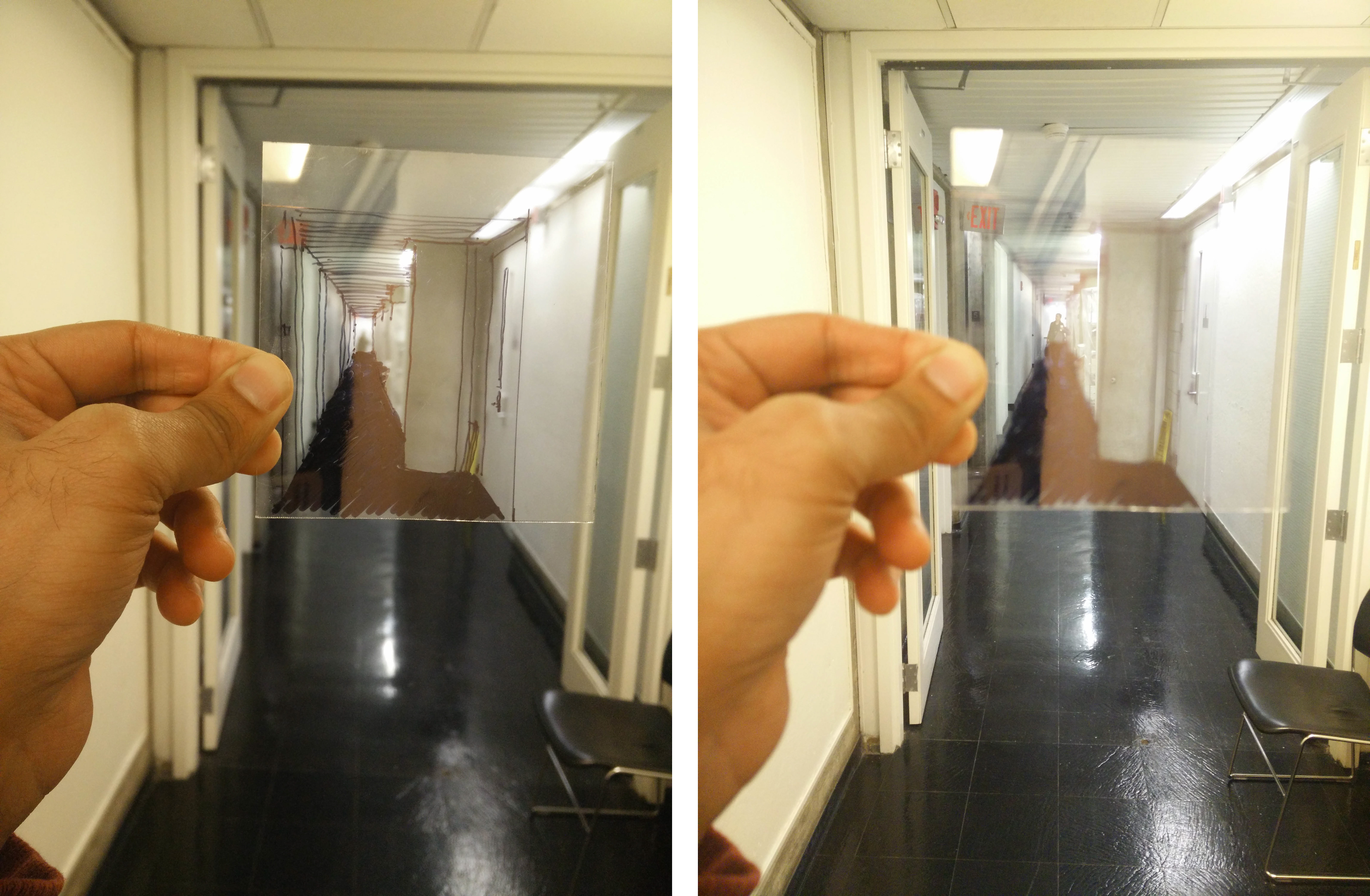 Viewer holds up the sketch to align to her vision.